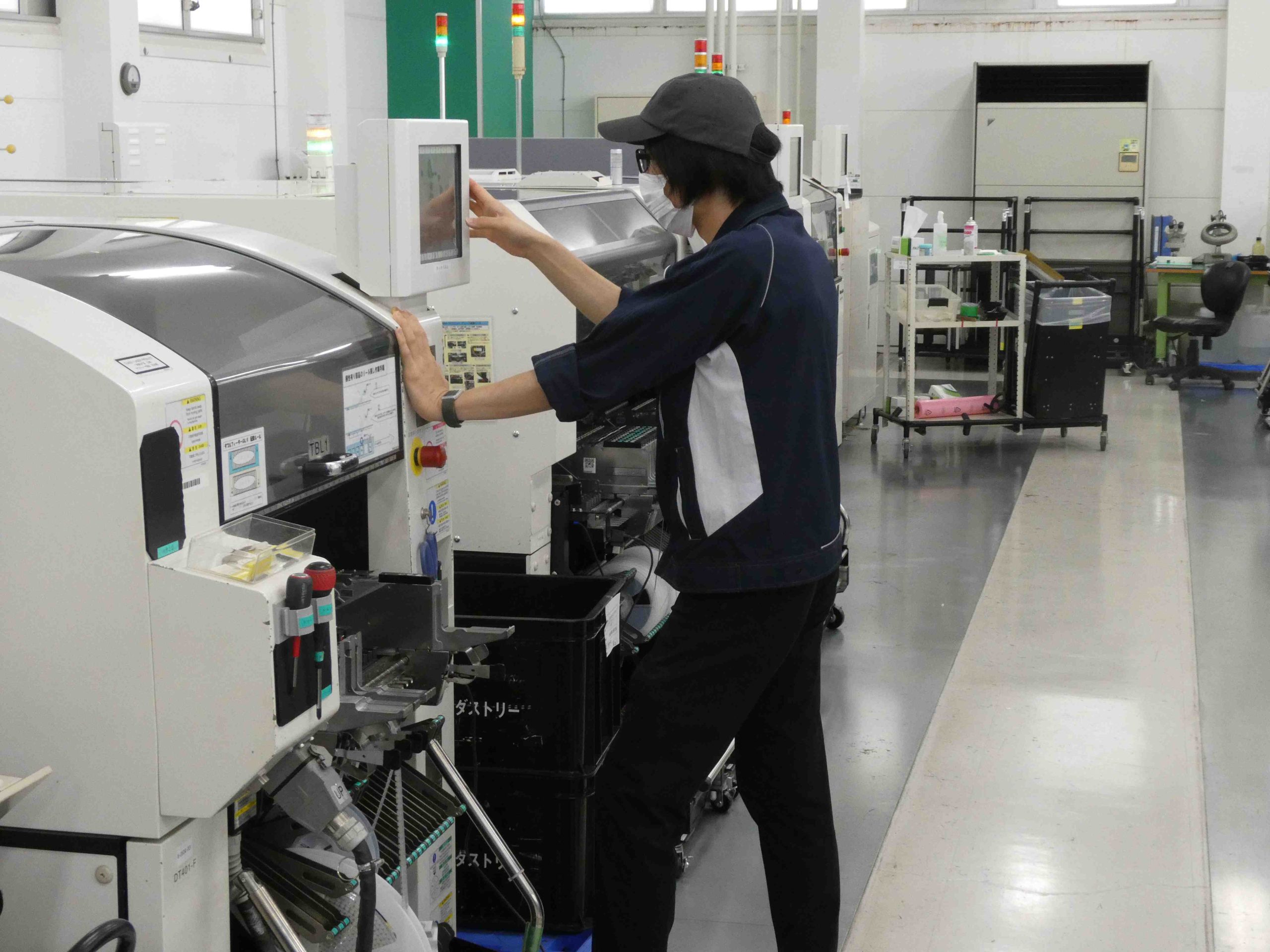 操作するお仕事です。 部品の準備段取り作業から、基板実装機の操作等をしていただきます。 現在のスタッフもほとんど未経験からのスタートです。 作業の際は、丁寧に指導いたします。